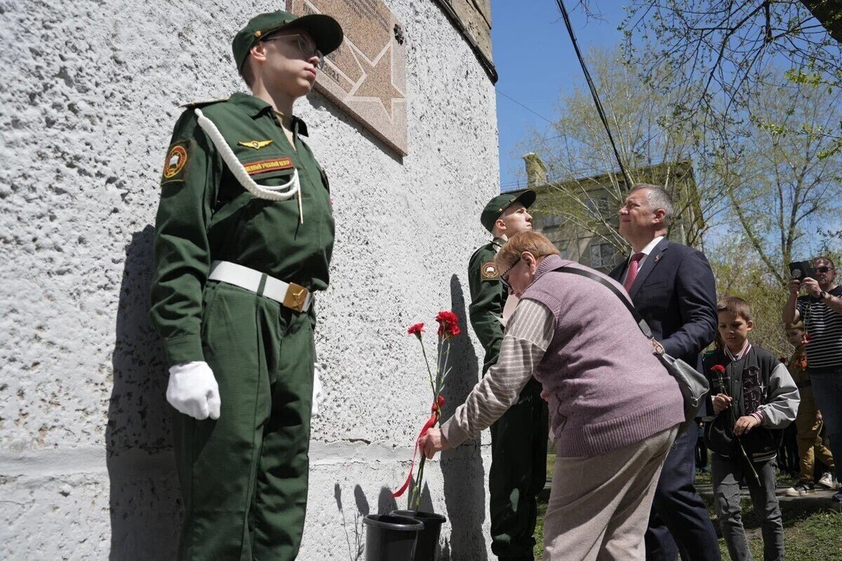 Участие в церемонии приняли губернатор Игорь Кобзев, дочь ветерана и его внук с семьёй.