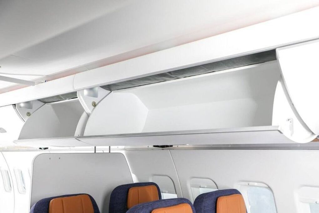 Разработчики решили снизить массу конструкций и предлагают вместо «ковшовых» полок так называемые «хлебницы». Вместимость их останется на прежнем уровне. Изначально планировалось увеличить вместимость багажных полок на 20-25%, однако после 2022 года пришлось искать замену зарубежным производителям. Сейчас компания «Авиационные интерьеры» уже наладила выпуск серийных полок для SJ-100, завершив испытания таких же конструкций и для МС-21. Для этого были смоделированы такие ситуации, как турбулентность и аварийная посадка, перегрузки и исключение сокрытия посторонних предметов.