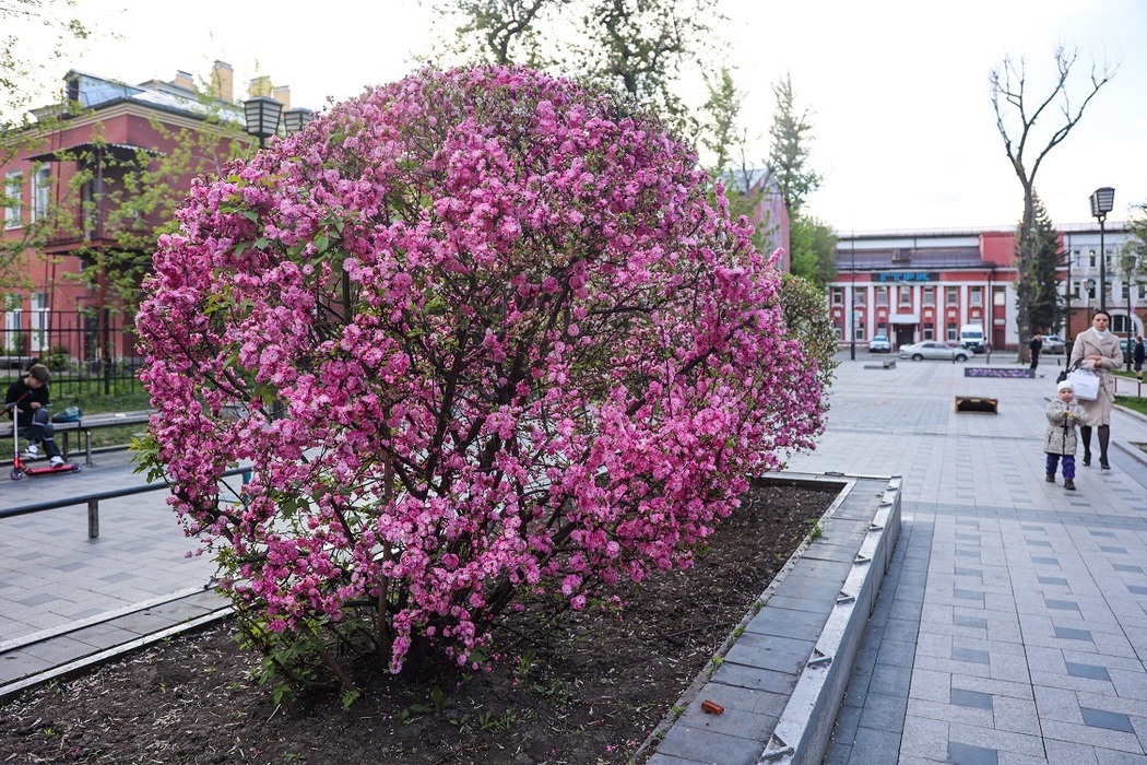 Наш корреспондент прошелся по майским улицам областного центра. В эти дни город прекрасен и благоухающ. Особенно удивляют черемуха и сакура, которые по всему городу одновременно покрылись густым цветом.