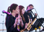 Несмотря на погоду, зрители в «Тальцы» приехали. В первый день на главной сцене выступали иркутяне, коллективы из Саянска, Новосибирска, Донецка, Орла, Казани, Минусинска. Во второй день – также из Иркутска, Новосибирска, Абакана и Москвы. Все они – победители второго Всероссийского конкурса молодежных джазовых коллективов «Ангара-джаз». Из московских коллективов были приглашены на фестиваль два – квартет молодого саксофониста Матвея Михеева, уроженца Иркутска, и биг-бенд колледжа «Академия джаза» Игоря Бутмана. О том, что происходило в «Тальцах» на сцене возле Ангары во второй день – наш репортаж.