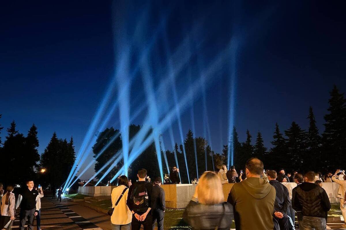 В 22:30 начнется концертная программа. В 23:00 в небо будут направлены лучи прожекторов. Прожекторы также будут включены у стелы "Иркутск – город трудовой доблести". Жителей города приглашают принять участие в акции.